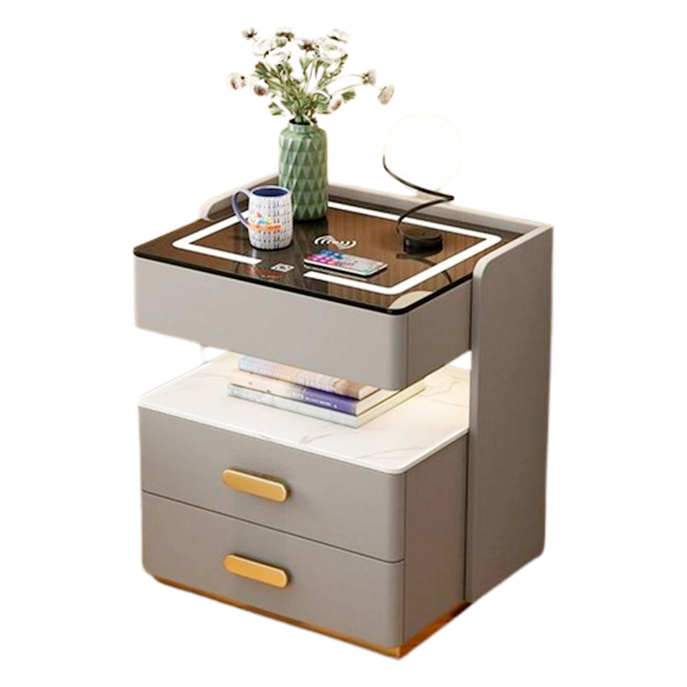 Mesa de Luz Carga Inalám. Luz LED Parlante Sensor Gris